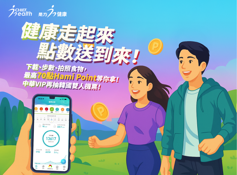 你今天走了幾步?拿起手機,下載App,完成步數挑戰、AI拍照任務,最高可以把70點Hami Point帶回家!中華電信VIP會員更享有獨家好康,有機會抽中韓國雙人來回機票,讓你點數、旅費一次到位!